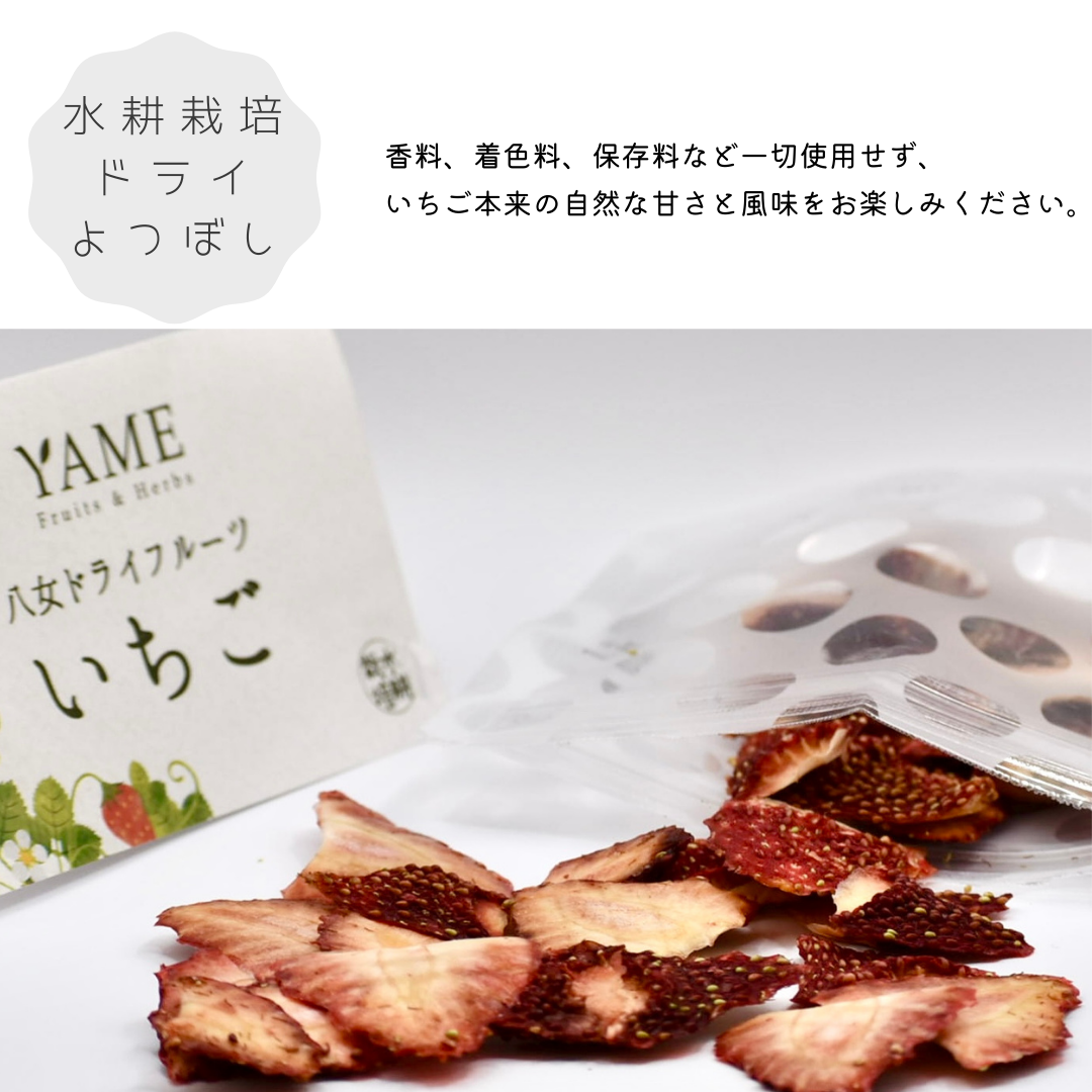 ドライストロベリー15g ¥510 (税込) ( strawberry1 ) 無添加・砂糖不使用・完全無農薬のいちご(品種:よつぼし)を丸ごと乾燥。 いちご本来の香りと甘味がギュッと詰まった極上のドライストロベリーです。 一つ一つ丁寧に育てた最高品質のいちごをお楽しみください。 保存方法:直射日光・高温多湿を避けて冷暗所で保存し、開封後はお早めにお召し上がりください。 ※時期によっては色の濃淡・サイズ差が生じる場合がございます。新鮮なものをご準備しておりますので到着のご希望に添えない場合がございます。ご了承ください。 在庫状態 : 在庫有り 数量 - +