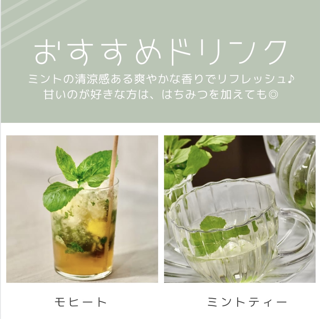 完全無農薬のミント。室内型水耕栽培で大切に育てたミントを毎朝手摘みで収穫。